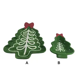 ของขวัญวันหยุดที่วาดด้วยมือบนจานต้นคริสต์มาสของ BYF ซึ่งมีรูปร่างต้นไม้ที่เป็นเอกลักษณ์และการออกแบบเทศกาลที่วาดด้วยมือ เป็นตัวเลือกที่สมบูรณ์แบบในการเพิ่มบรรยากาศโต๊ะคริสต์มาส การเคลือบสีเขียวเข้มผสมผสานกับองค์ประกอบคลาสสิก เช่น เกล็ดหิมะสีขาวและผลเบอร์รี่สีแดง ให้ความรู้สึกรื่นเริงรื่นเริง