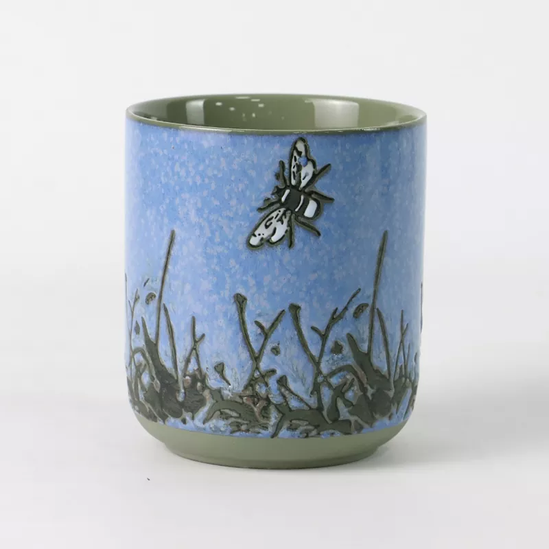 ซีรีส์เชิงเทียนเซรามิกลายแมลงได้รับแรงบันดาลใจจากภาพถ่ายธรรมชาติของ "Cordyceps symbiosis" ซึ่งรวบรวมแก่นแท้ของสุนทรียศาสตร์ตะวันออกคลาสสิกและความงามอันลึกลับของท้องฟ้าที่เต็มไปด้วยดวงดาว โดยผสมผสานการเคลือบที่ใช้เตาเผาอุณหภูมิสูงเข้ากับการตกแต่งเคลือบด้านล่างที่ลงสีด้วยมือ โดยผ่านการปรับแต่งและปรับปรุงหลายสิบครั้งเพื่อสร้างสีอันเป็นเอกลักษณ์สามสีในท้ายที่สุด ได้แก่ Starry Night Blue, Mystic Green และ Deep Indigo ผนังด้านนอกของถ้วยมีลักษณะคล้ายท้องฟ้าที่เต็มไปด้วยดวงดาวอันกว้างใหญ่ที่โรยด้วยจุดสีทองละเอียดราวกับความสุกใสของทางช้างเผือกอยู่ในฝ่ามือของคุณ ผนังด้านในใช้การเคลือบบริสุทธิ์ ใสดุจกระจก สร้างความตัดกันของภาพที่ชัดเจนกับพื้นผิวท้องฟ้าที่เต็มไปด้วยดวงดาวด้านนอก แสดงให้เห็นถึงความชาญฉลาดในการทำงานร่วมกันของแสงและเงา ผีเสื้อ ก้านหญ้า และลวดลายดอกแดนดิไลออนที่วาดด้วยมือที่ด้านล่างสร้างสรรค์อย่างพิถีพิถันโดยช่างฝีมือผู้มีประสบการณ์ มีชีวิตชีวาและมีชีวิตชีวา ดูเหมือนบอกเล่าเรื่องราววงจรแห่งชีวิตและการอยู่ร่วมกันของธรรมชาติชั่วนิรันดร์ ถ้วยแต่ละใบเป็นผลงานศิลปะที่มีเอกลักษณ์เฉพาะตัว แสดงถึงความเคารพต่อธรรมชาติและการเฉลิมฉลองของชีวิต
