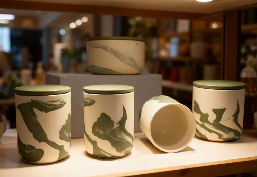 โถเทียนเซรามิกลายหินอ่อนสีเขียวธรรมชาติ